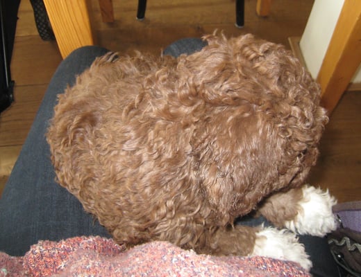 Met Chico gaat het ook goed. Hij heeft goed geslapen vannacht en heeft, typisch Lagotto, het beste plekje in huis al gevonden. Aan de voeten van zijn nieuwe mensen!