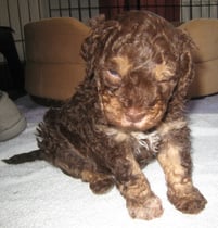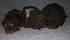 En dan is ineens de vierde week ook alweer voorbij. Razendsnel ontwikkelen de pups zich nu. Iedere dag hebben ze bezoek gekregen van familie, vrienden of de nieuwe eigenaren die met ze knuffelen en spelen. Het zijn alledrie aanhankelijke hondjes die graag worden aangehaald. Ze zijn vandaag voor de tweede maal ontwormd. Ook hebben ze voor het eerst vlees vermengd met geitenmelk geproefd. Hun verblijf is flink uitgebreid zodat ze voldoende ruimte hebben om te spelen en de wereld te onderzoeken.